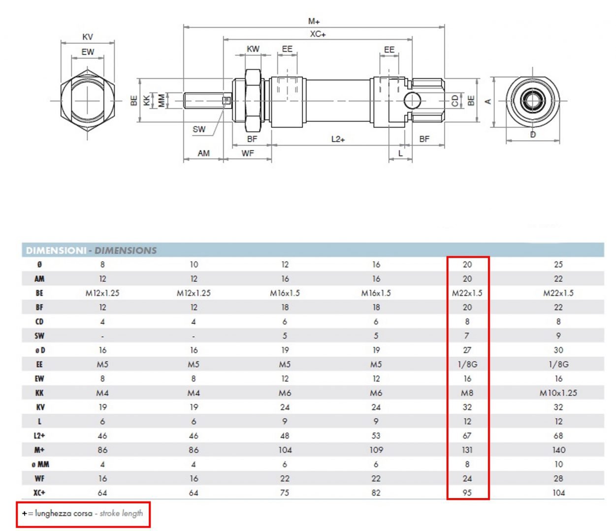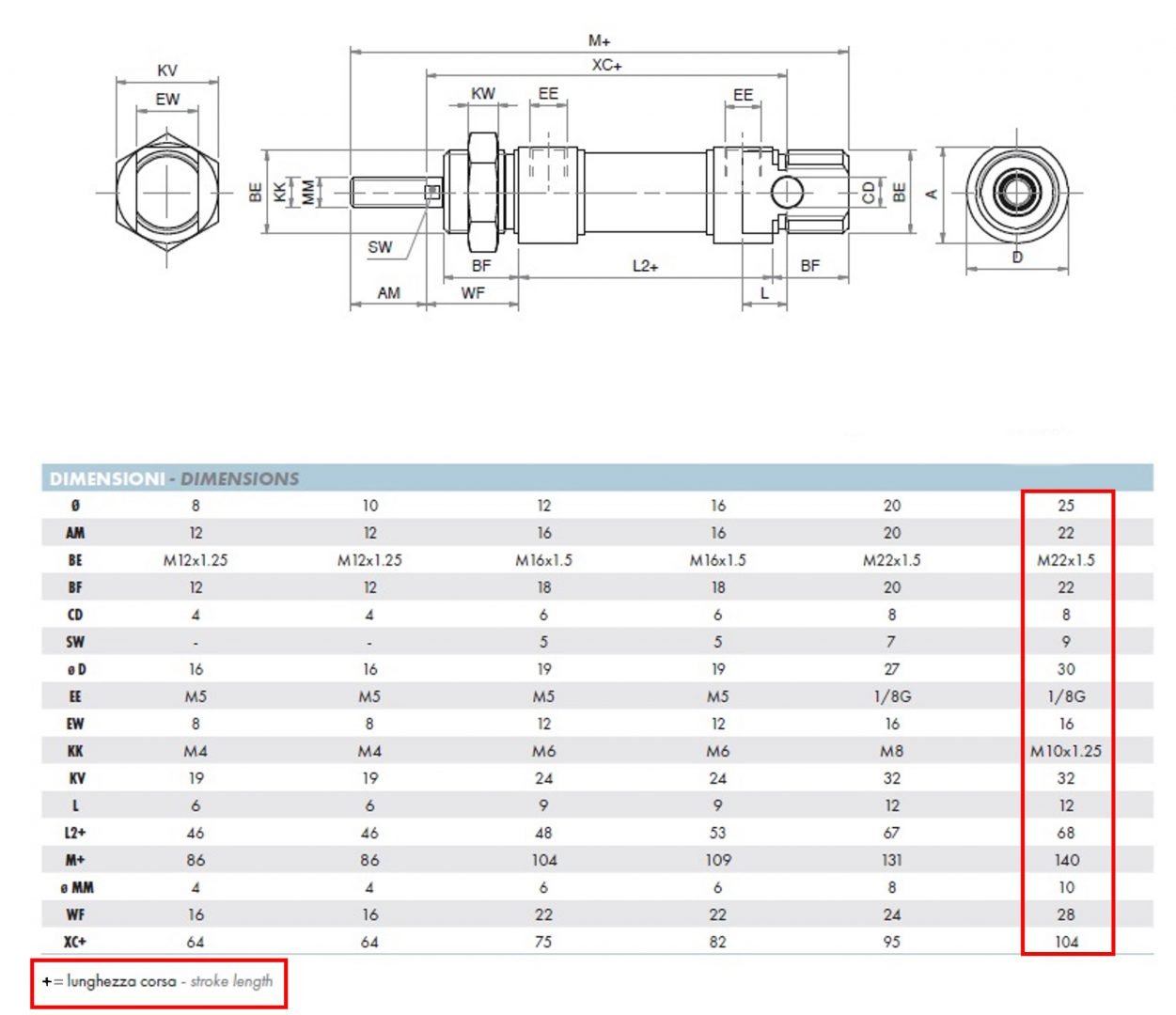 Dimensioni a Norme ISO 6432, ovvero perfettamente intercambiabili con altri di altri produttori.
