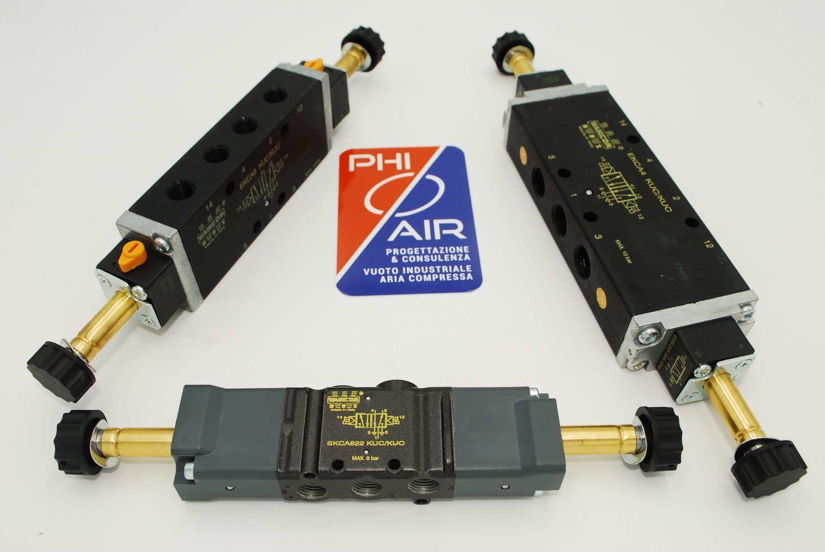 Elettrovalvola Waircom 5/2 bistabile, serie EKCA KUC/KUC compatta, con connessioni sul corpo. Fornita senza bobine.