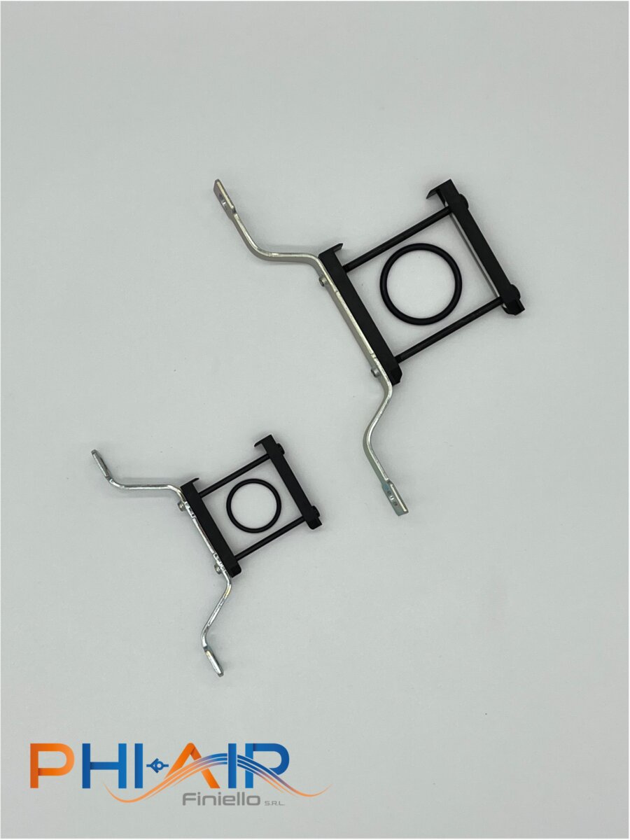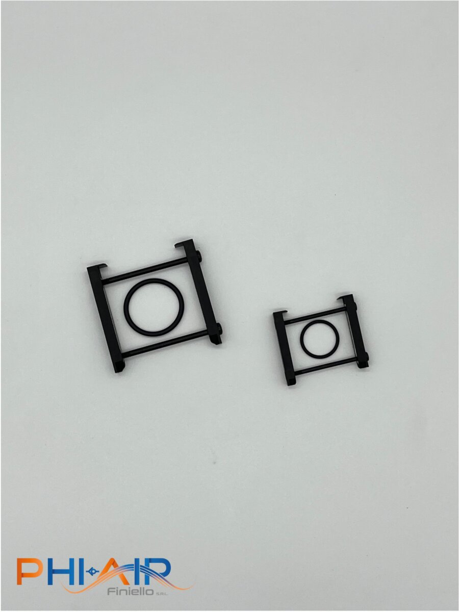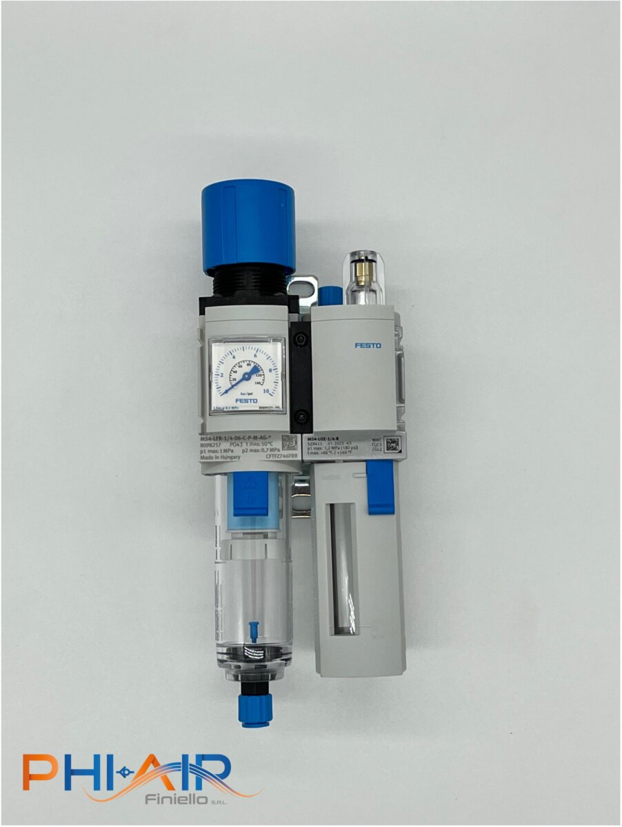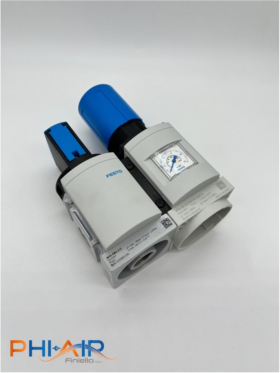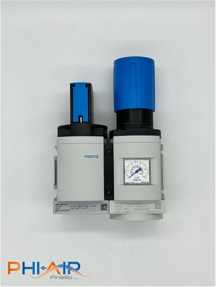Giunzioni per elementi FESTO serie MS. Queste giunzioni permettono di comporre in modo agevole e pulito vari elementi del trattamento aria (valvole di inserimento, filtroriduttore, pressostato, ecc) con la possibilità di inserire staffe di fissaggio a parete.