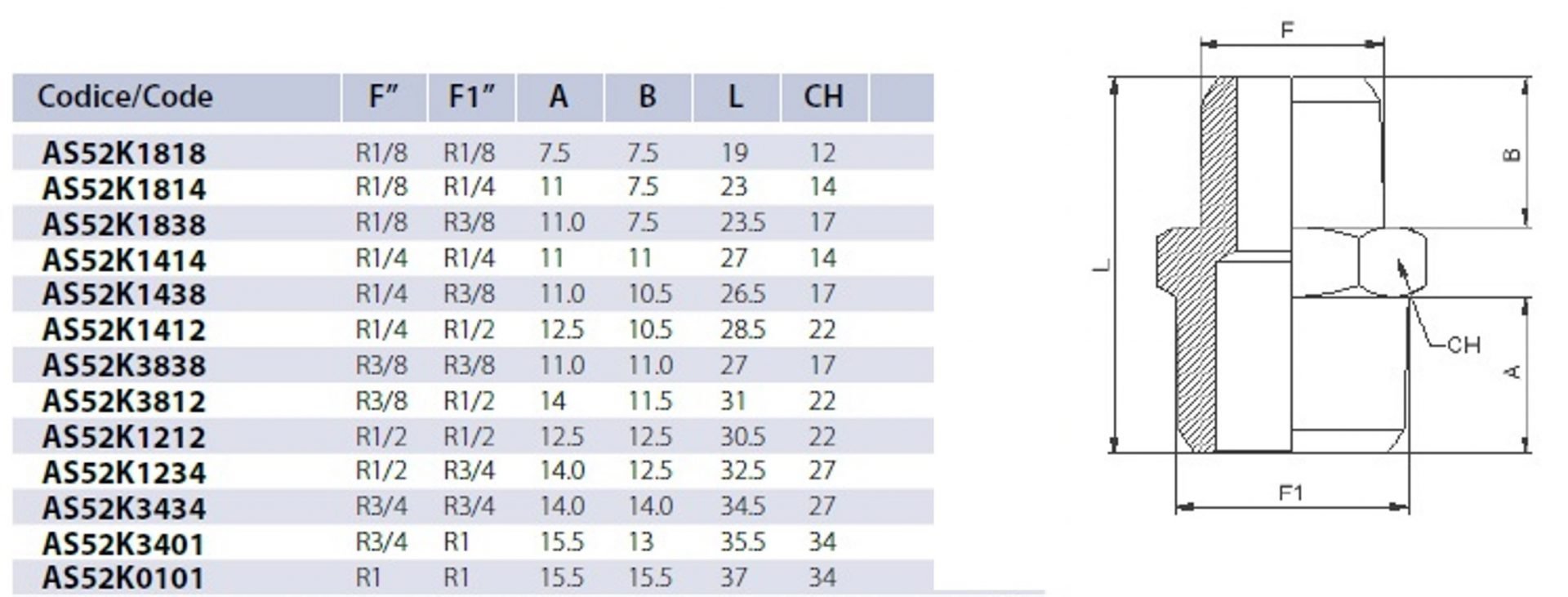 Disponibili a magazzino con filettature BSP (1/8” – 1/4” – 3/8” – 1/2” – 3/4” – 1”) e Metriche (M5), nelle varie combinazioni.