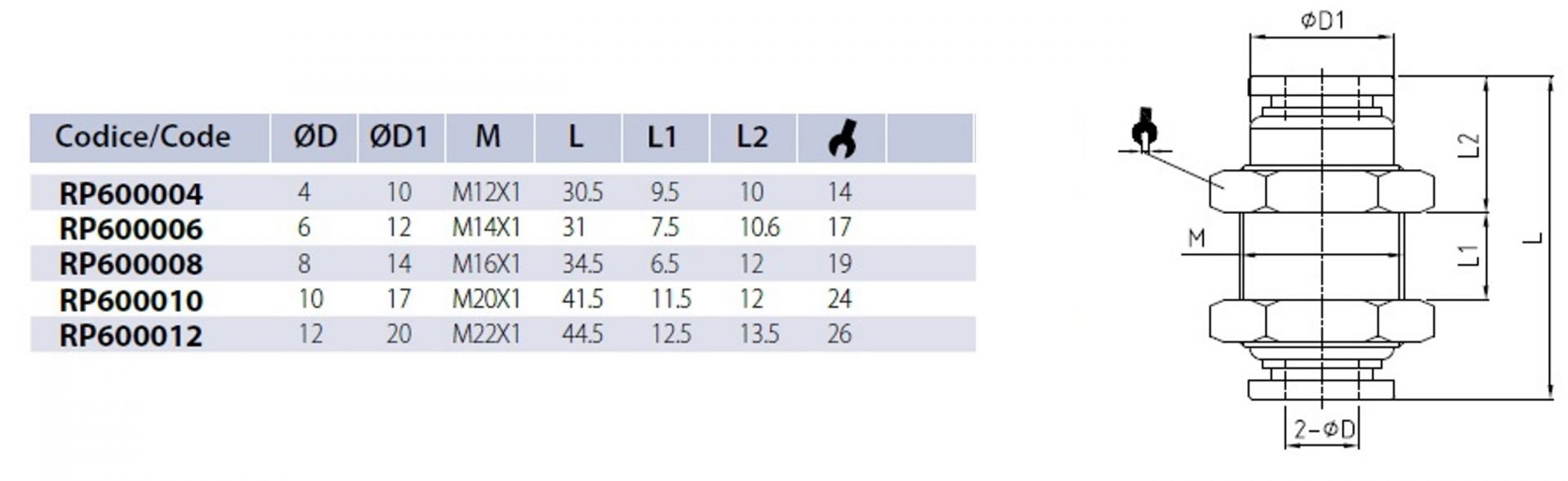 Ogni raccordo è disponibile nelle taglie per tubi da diametro esterno 4, 6, 8, 10, 12, 14.