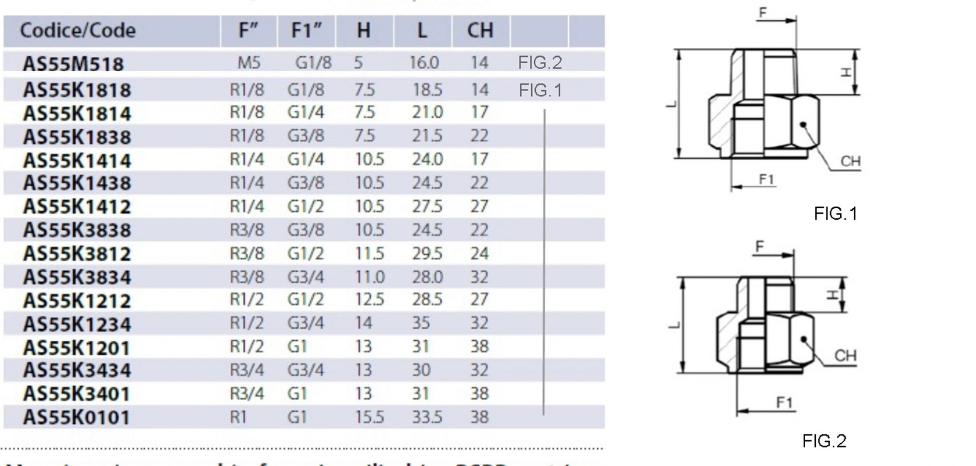 Disponibili a magazzino con filettature BSP (1/8” – 1/4” – 3/8” – 1/2” – 3/4” – 1”) e Metriche (M5), nelle varie combinazioni.