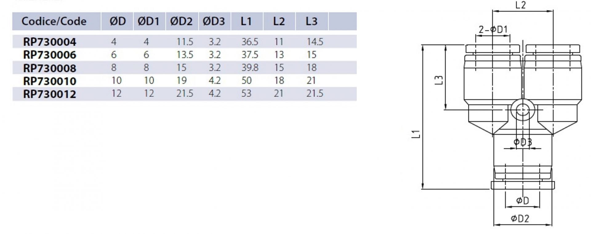 Raccordi Intermedi a Y, elementi di connessione per impianti per l’aria compressa.