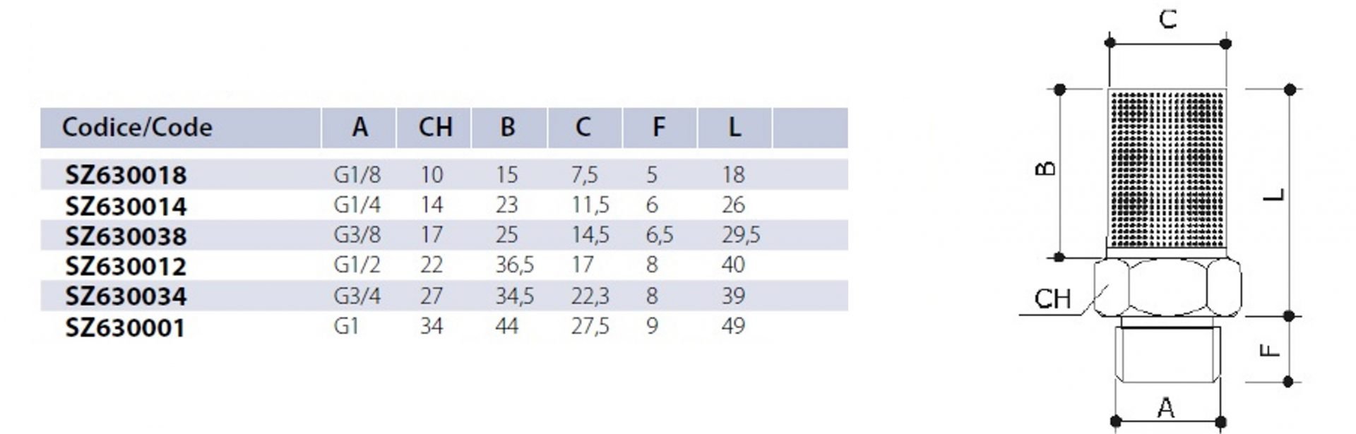 Silenziatore a Tronco di Cono, disponibile con filettatura da 1/8” – 1/4” – 3/8” – 1/2”